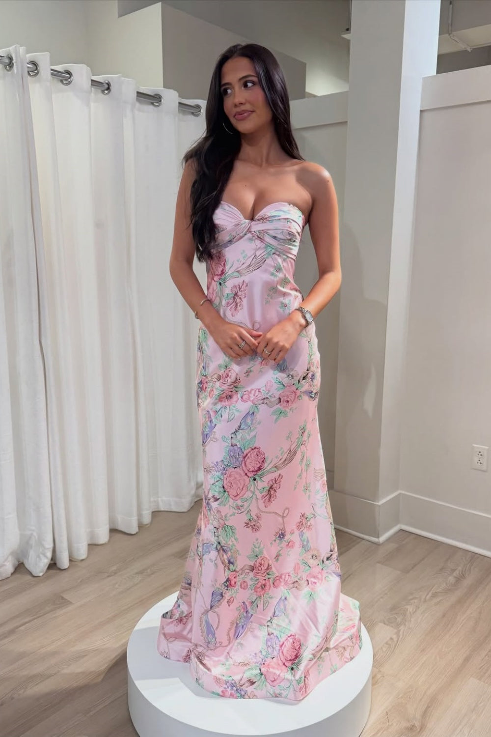 Strapless Floral Print Mermaid Long Formal Dress with Twist